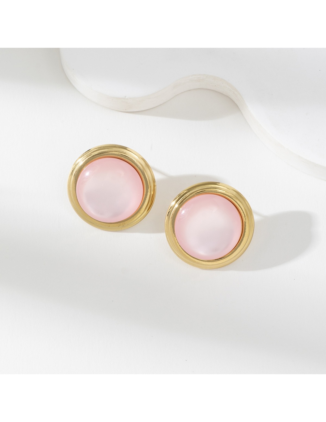 - Boucles d’oreilles rondes à l’effet nacré rose poudré
