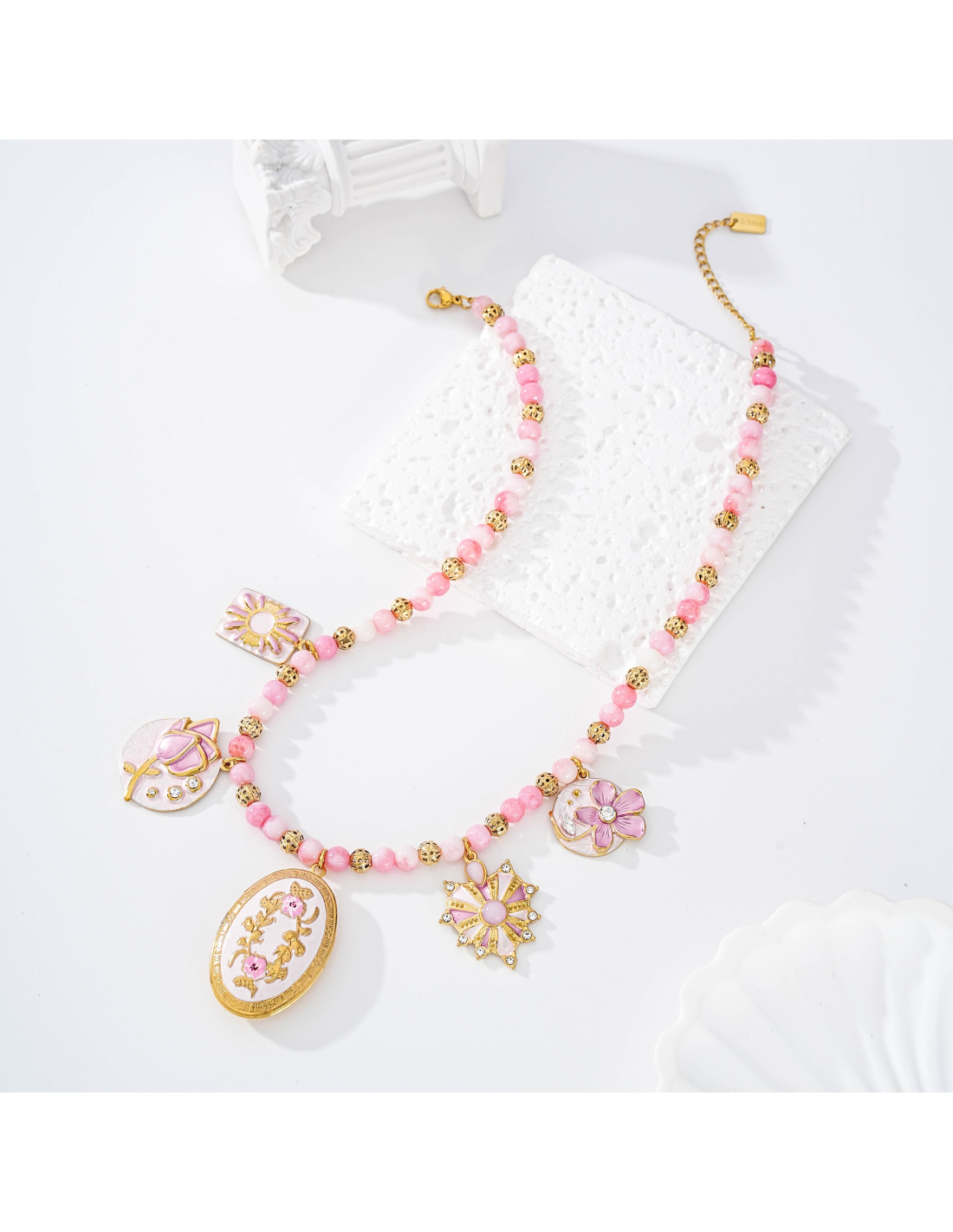 Inel - collier à breloques rose