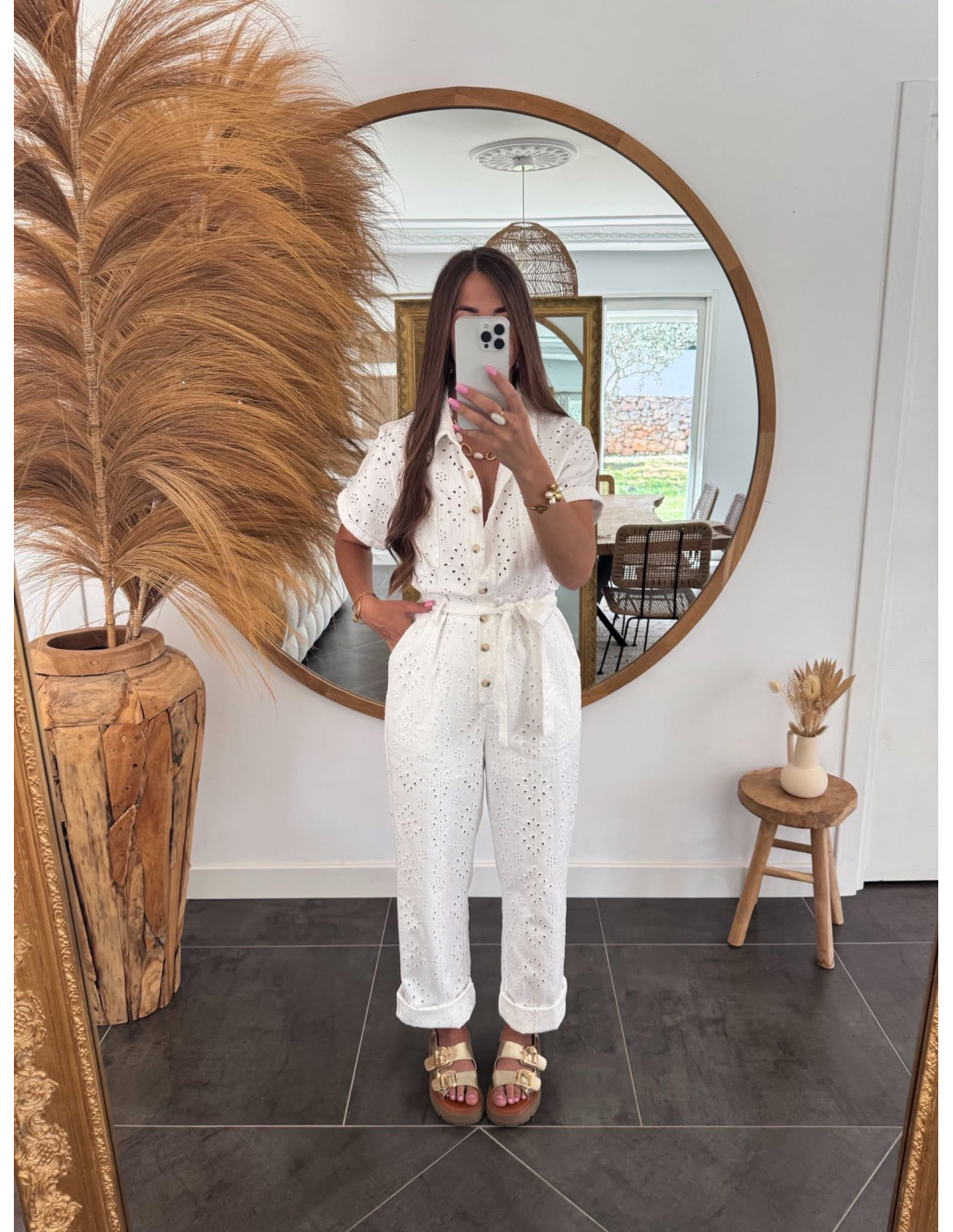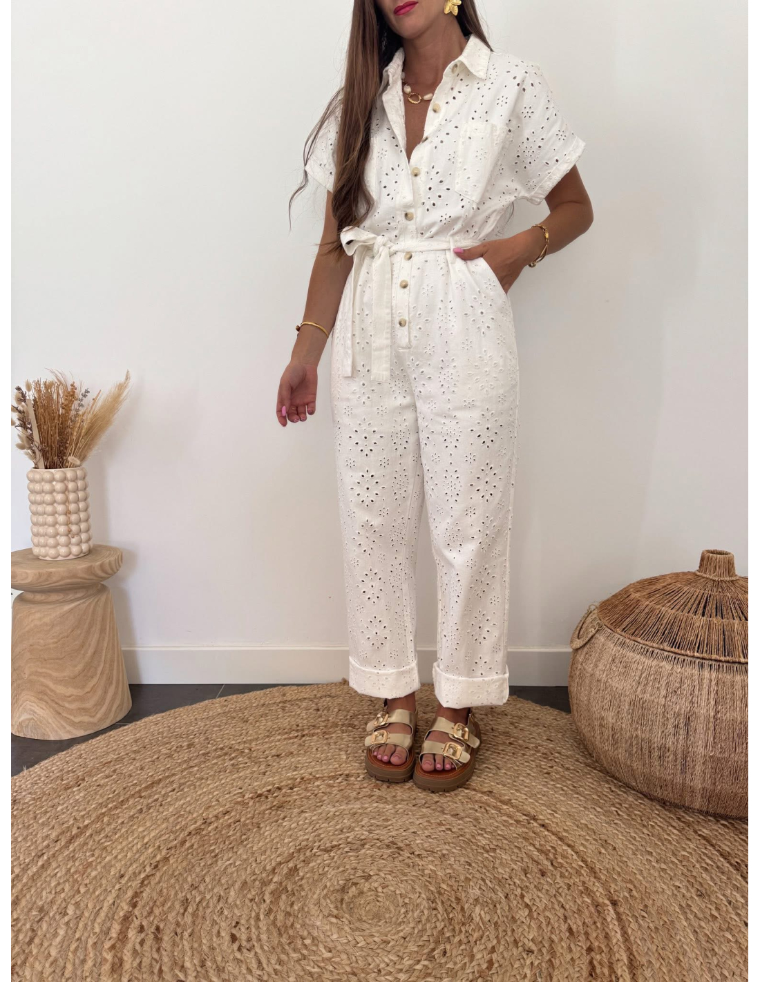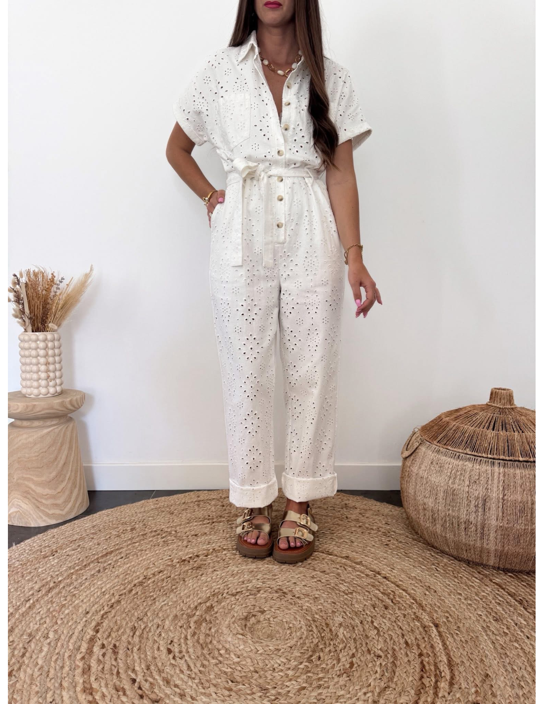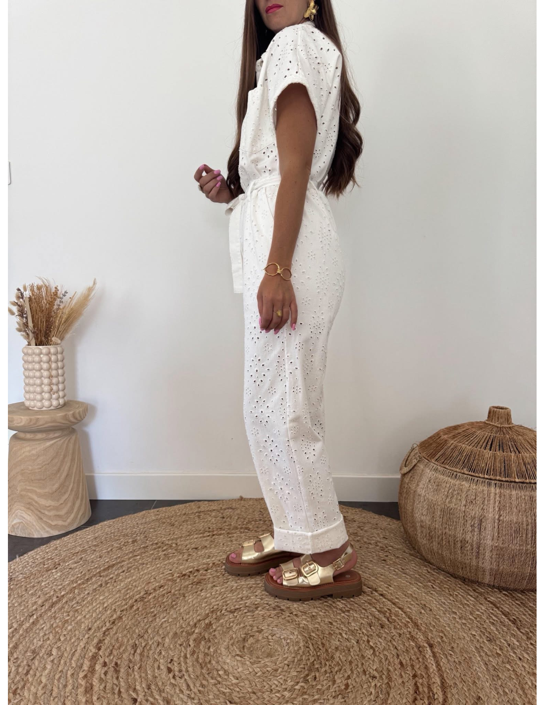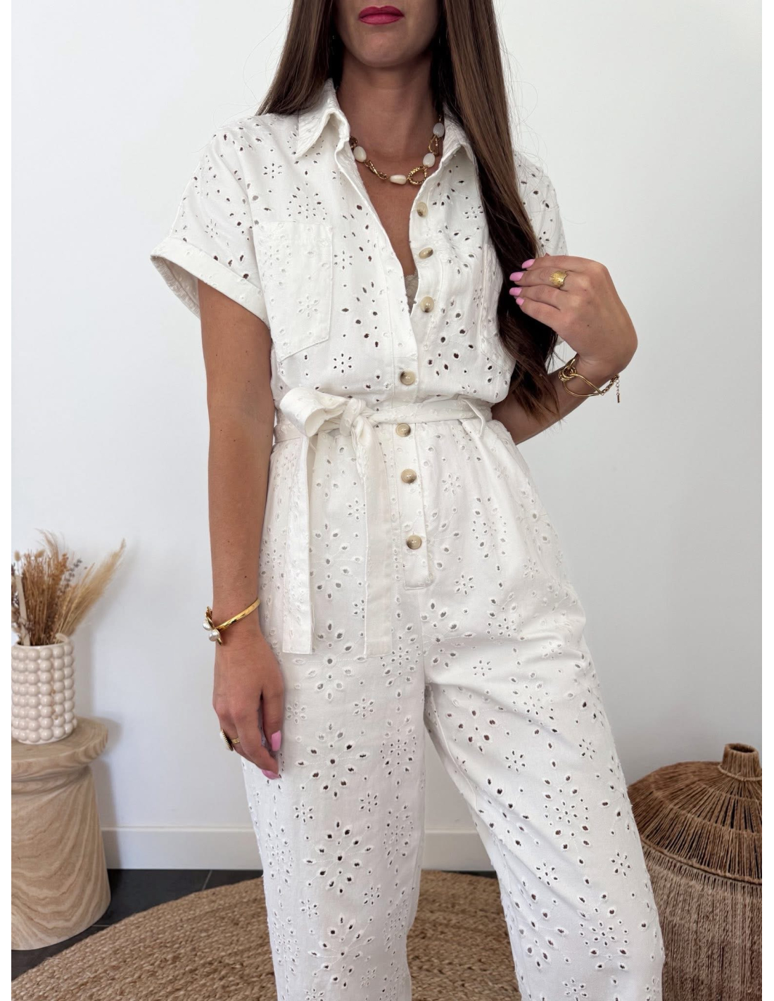 - Motif broderies florales ajourées sur l’ensemble de la pièce