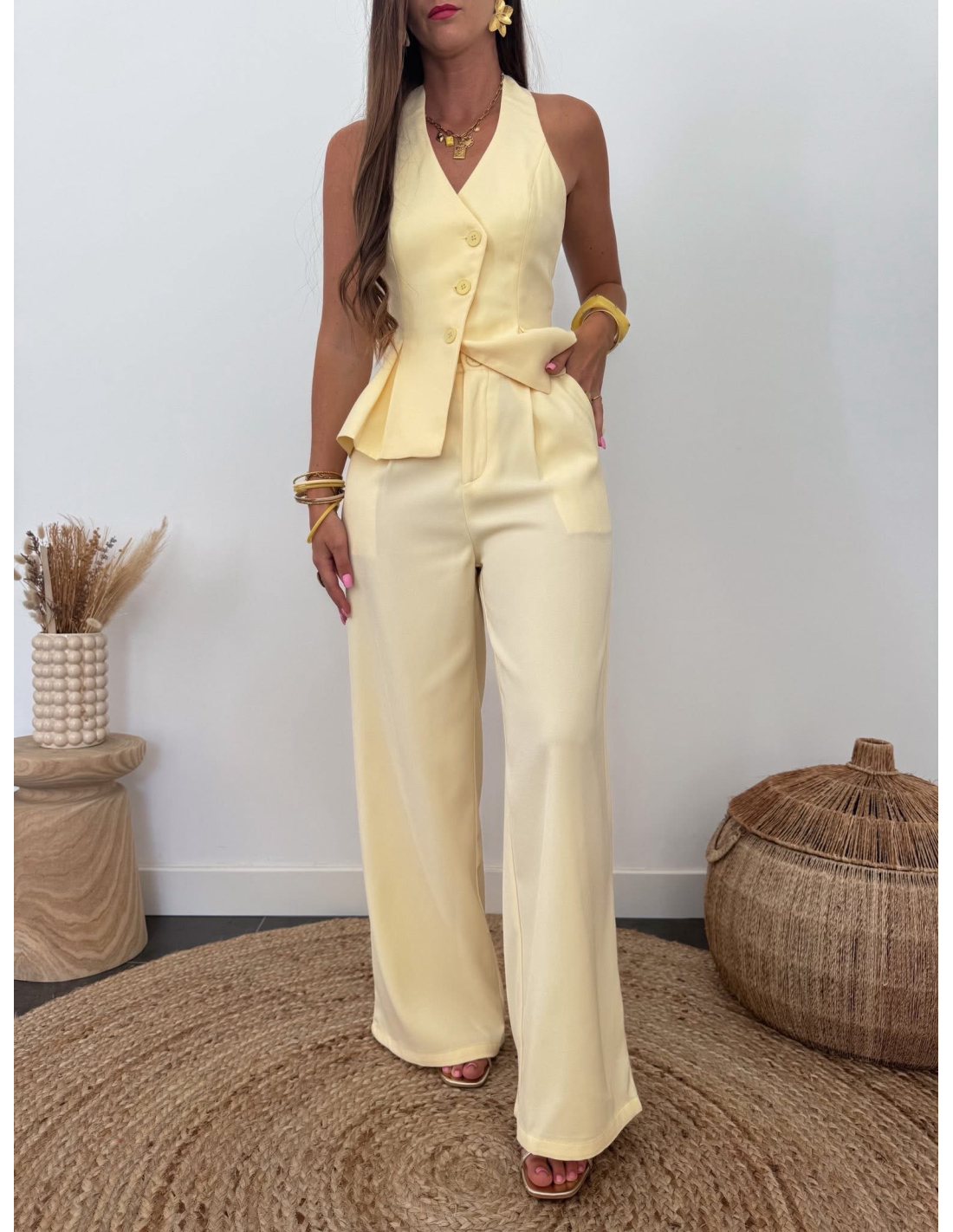 Je mesure 1m65 et porte le gilet de tailleur Pedra en taille M pour un 38 en bas.