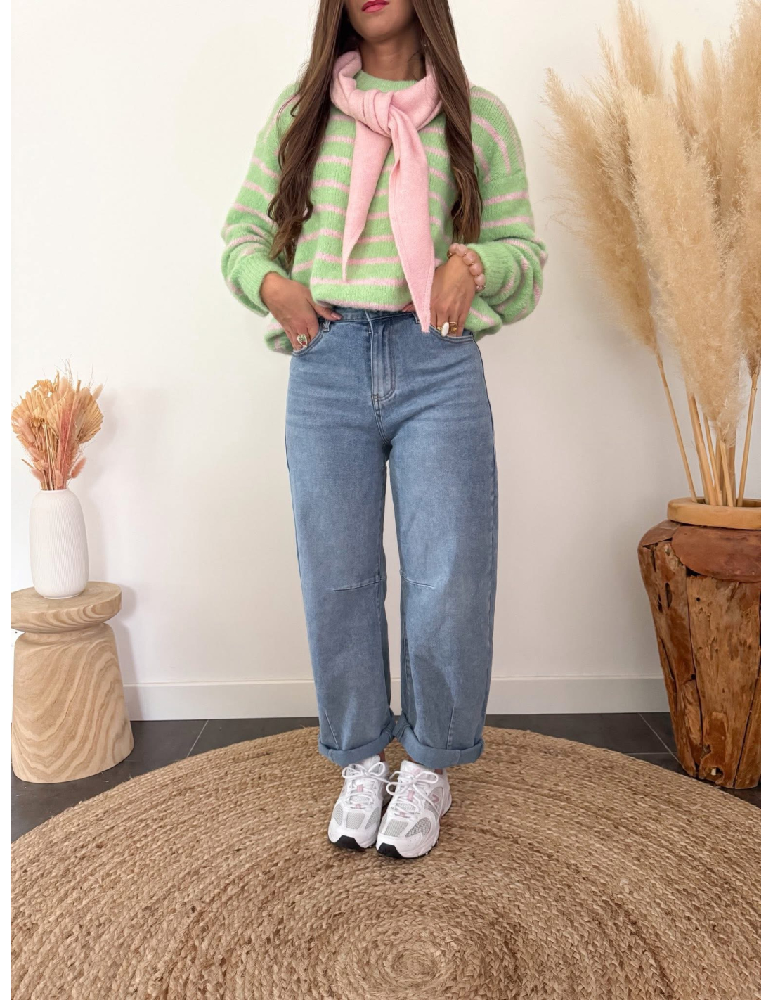 - Jean coupe balloon fit : ample sur les hanches et légèrement resserré aux chevilles