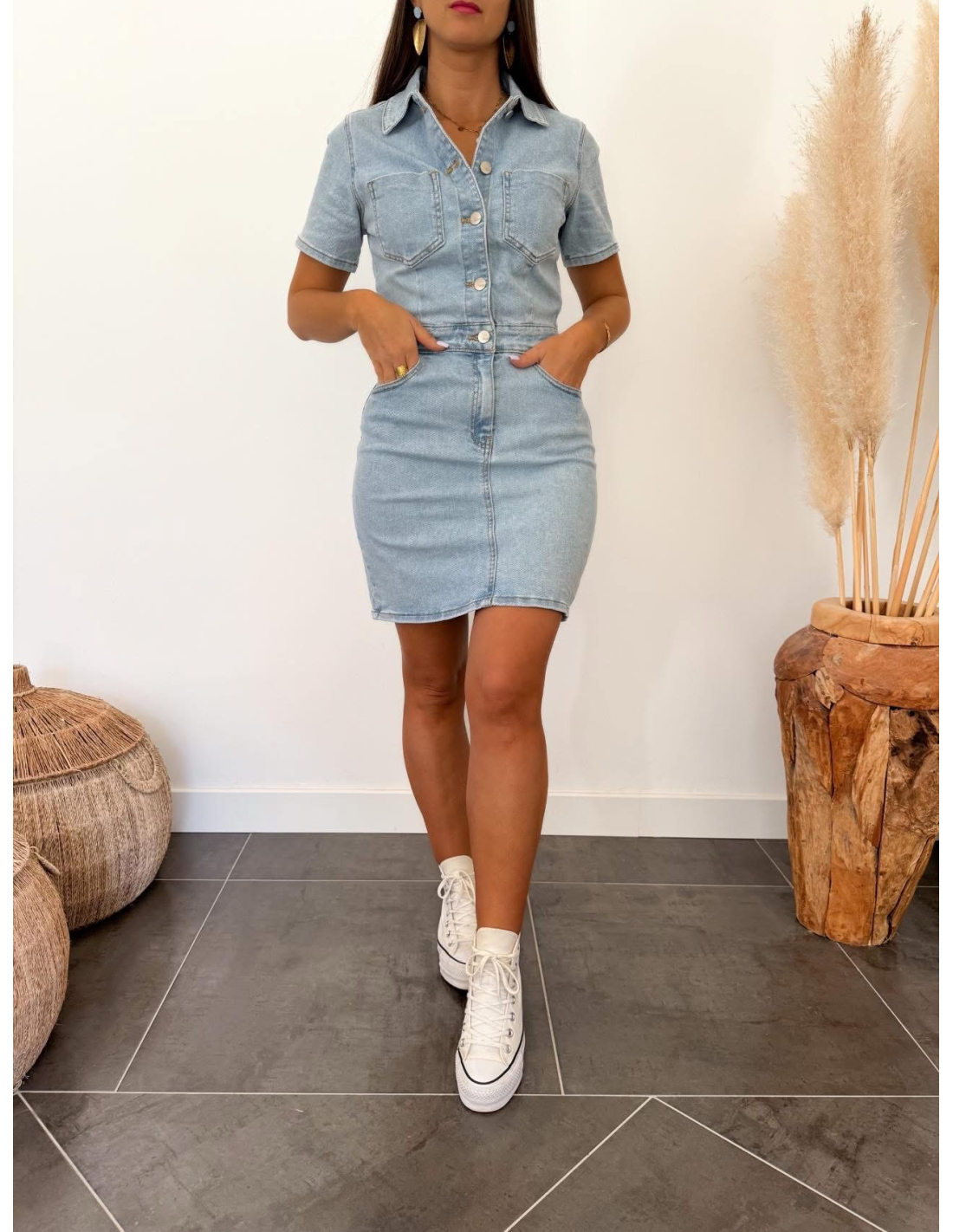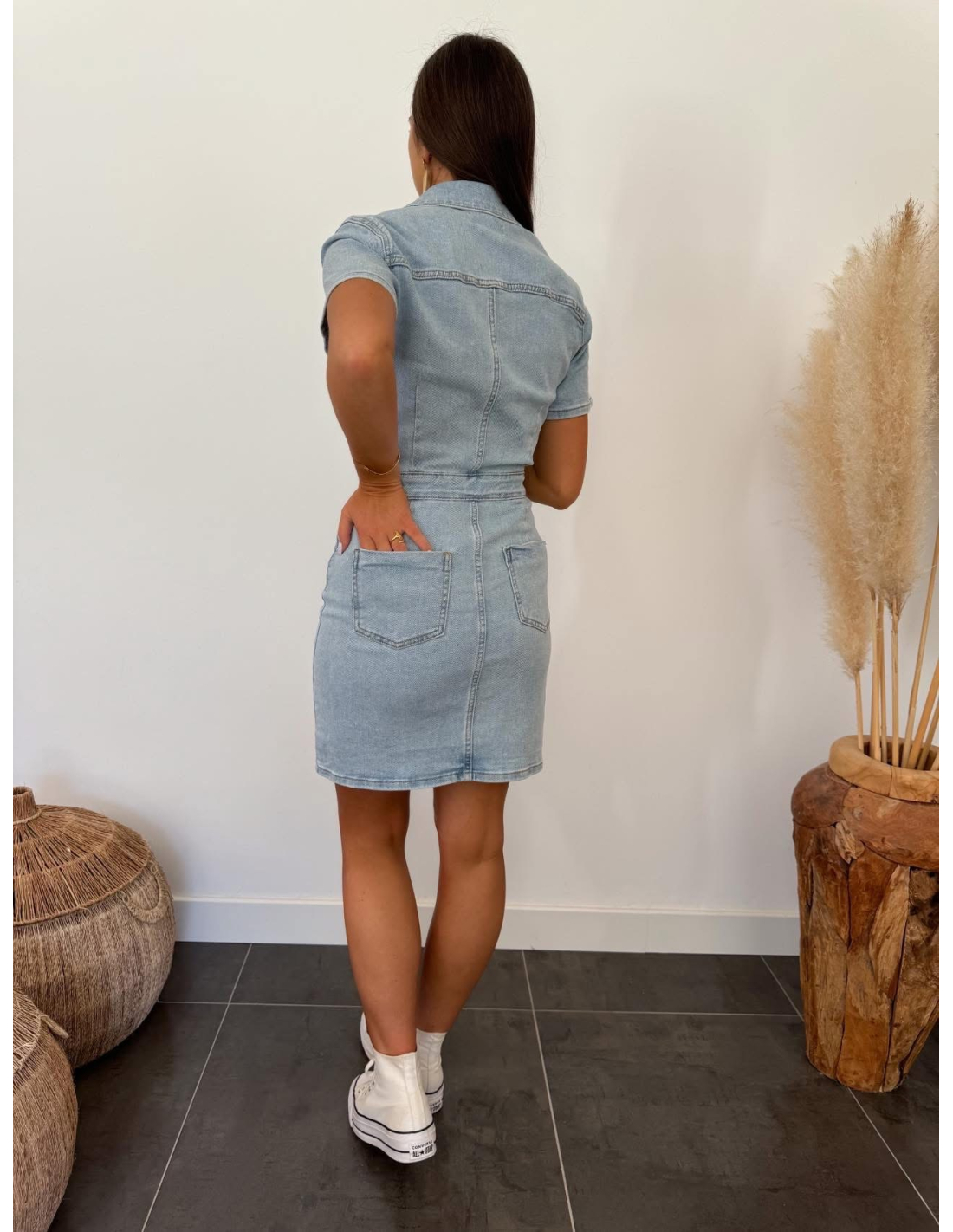 Je mesure 1m65 et porte la robe Saria en taille S pour un 36 en haut et 38 en bas.