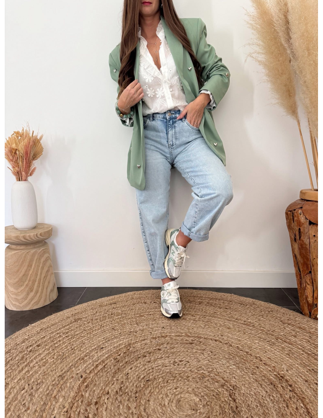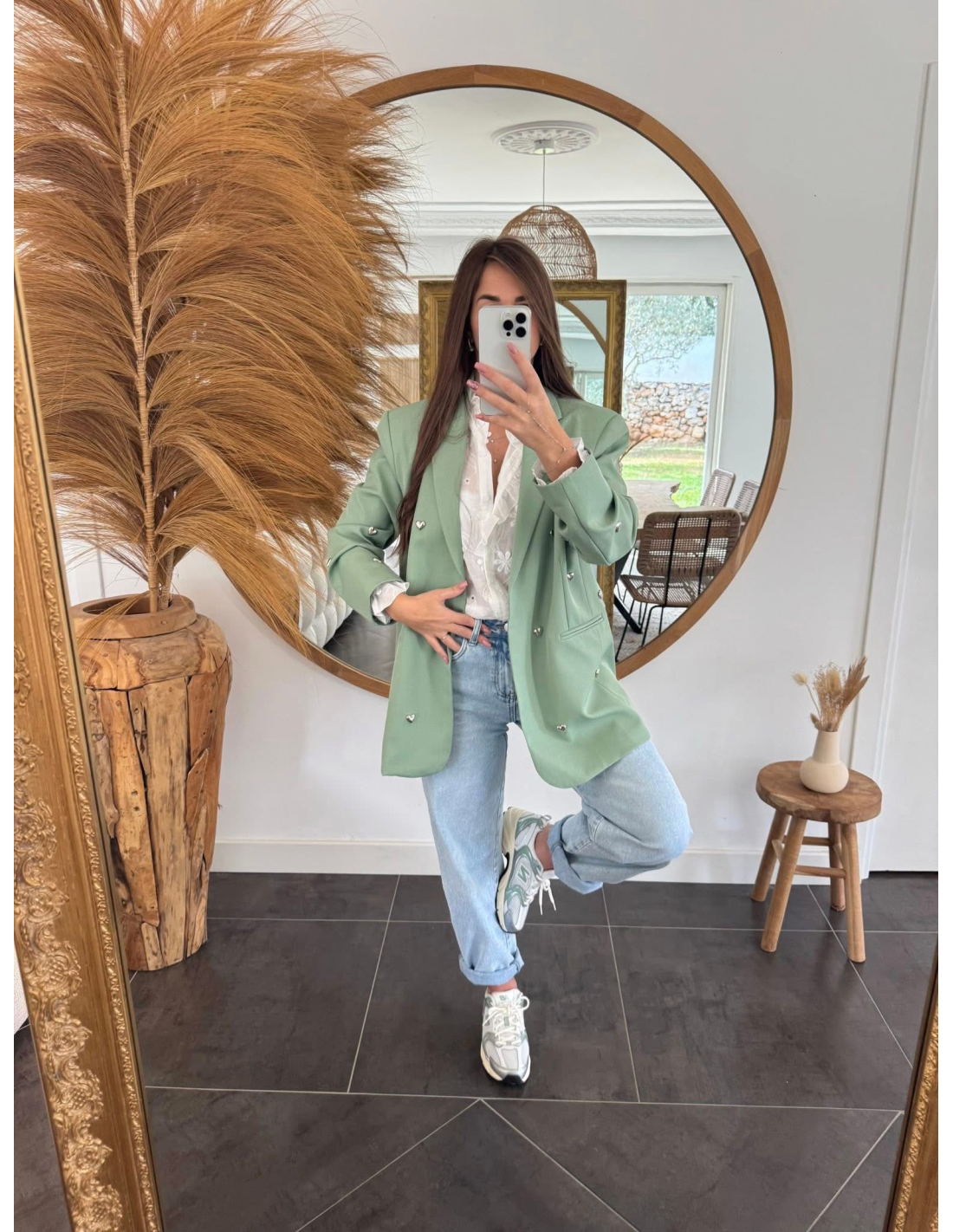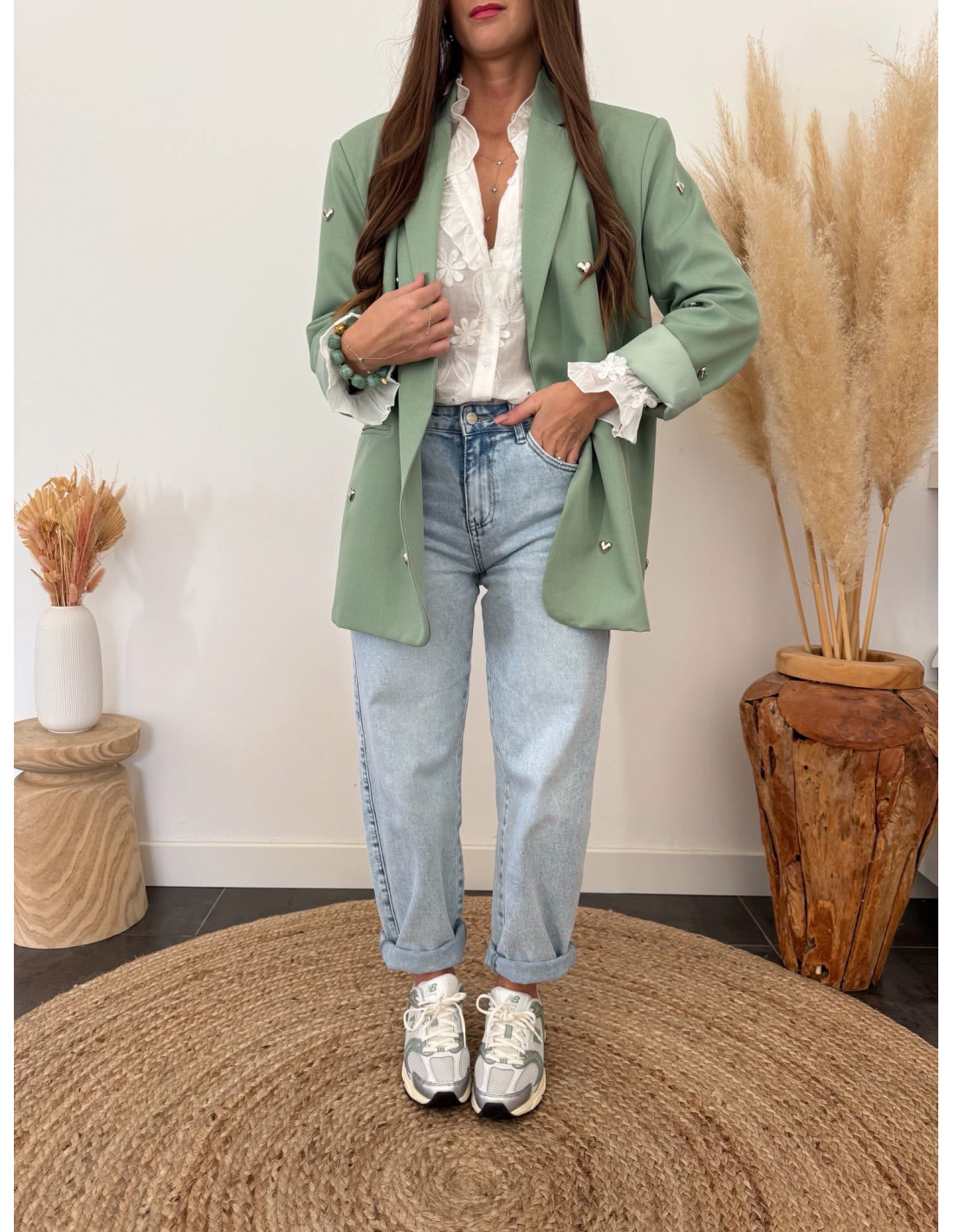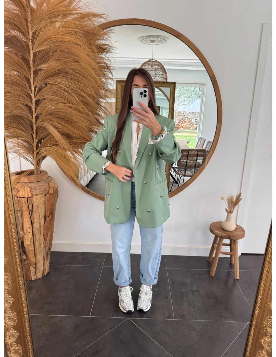 Je mesure 1m65 et porte le blazer Colby en taille S/M pour un 36 habituel.